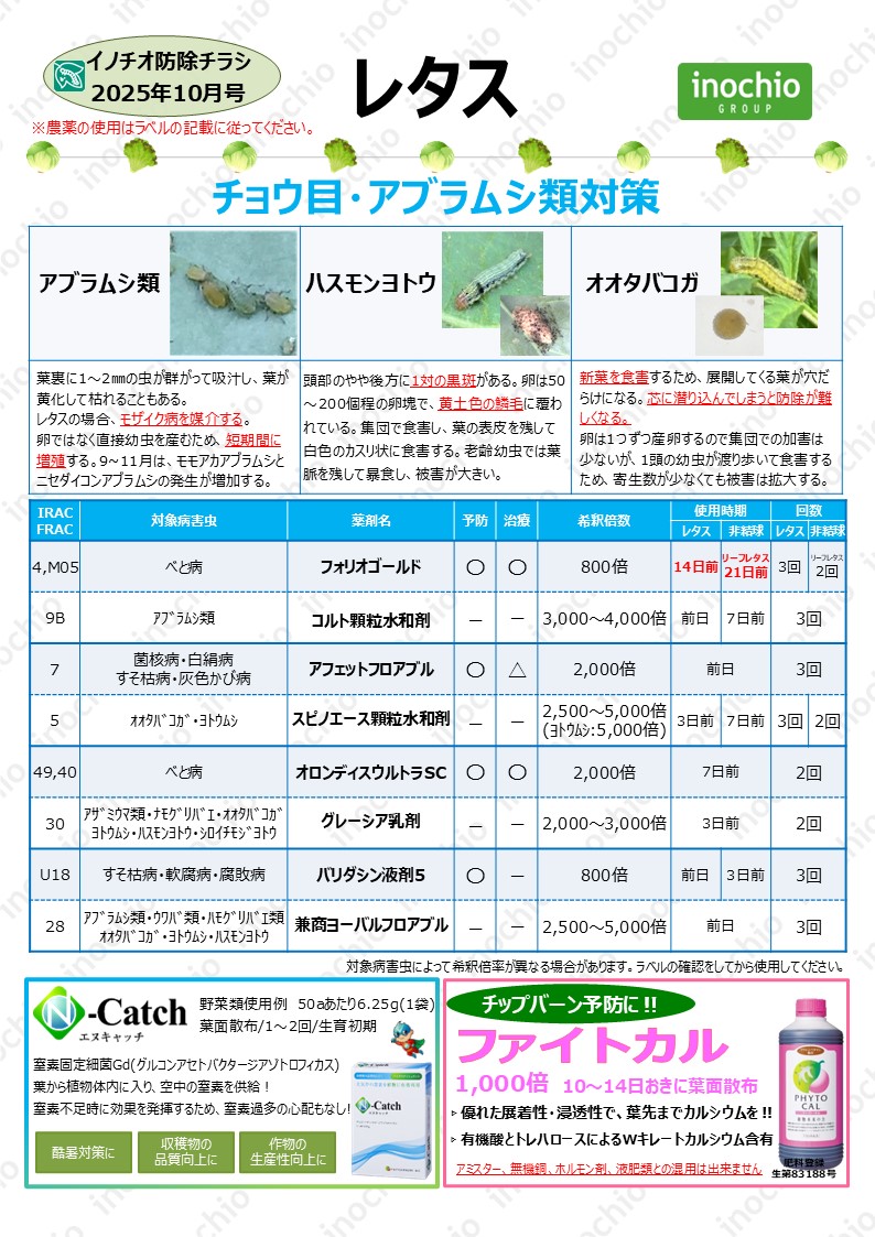 【2025年10月】レタス編「チョウ目・アブラムシ類対策」