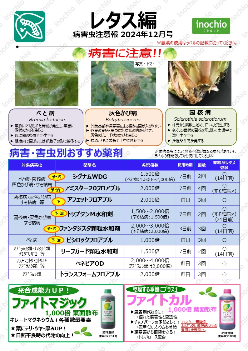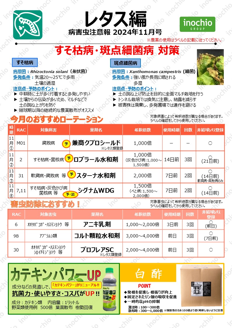 【2024年11月】レタス編「すそ枯病・斑点細菌病 対策」