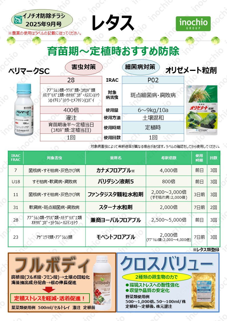 【2025年9月】レタス編「育苗期~定植時のおすすめ防除」