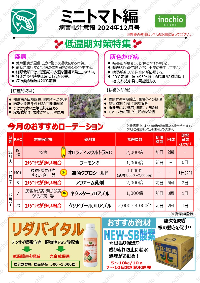 【2024年11月】ミニトマト編「冬季のハウス環境における病害防除の重要性」