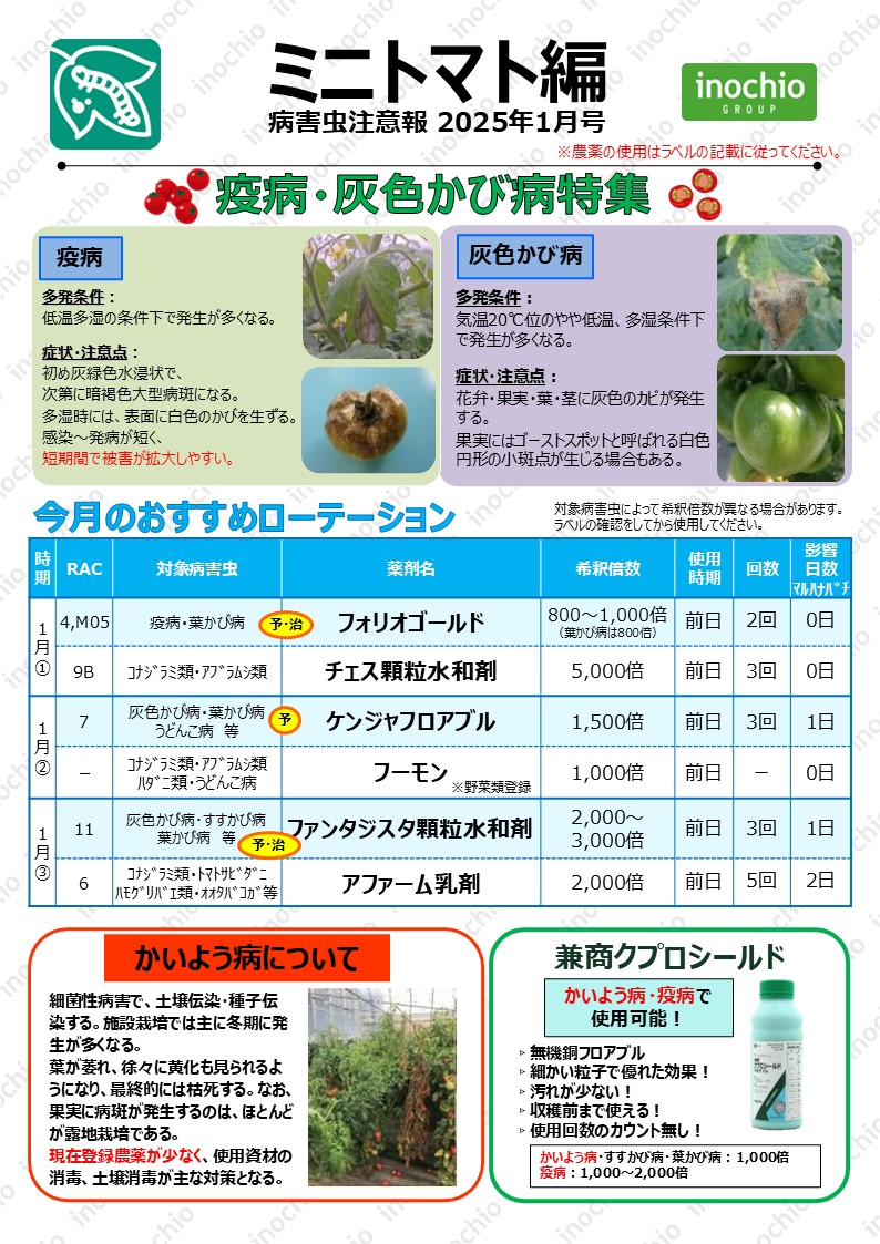 【2025年1月】ミニトマト編「疫病・灰色かび病対策」