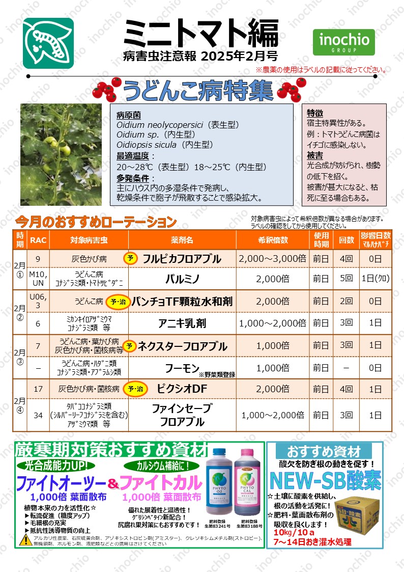 【2025年2月】ミニトマト編「うどんこ病特集」