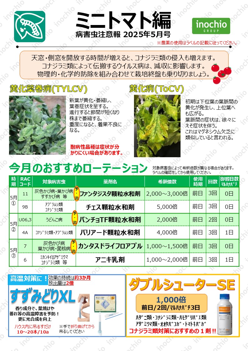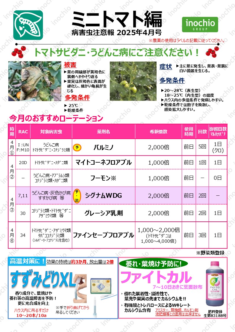 【2025年4月】ミニトマト編「トマトサビダニ・うどんこ病にご注意!」