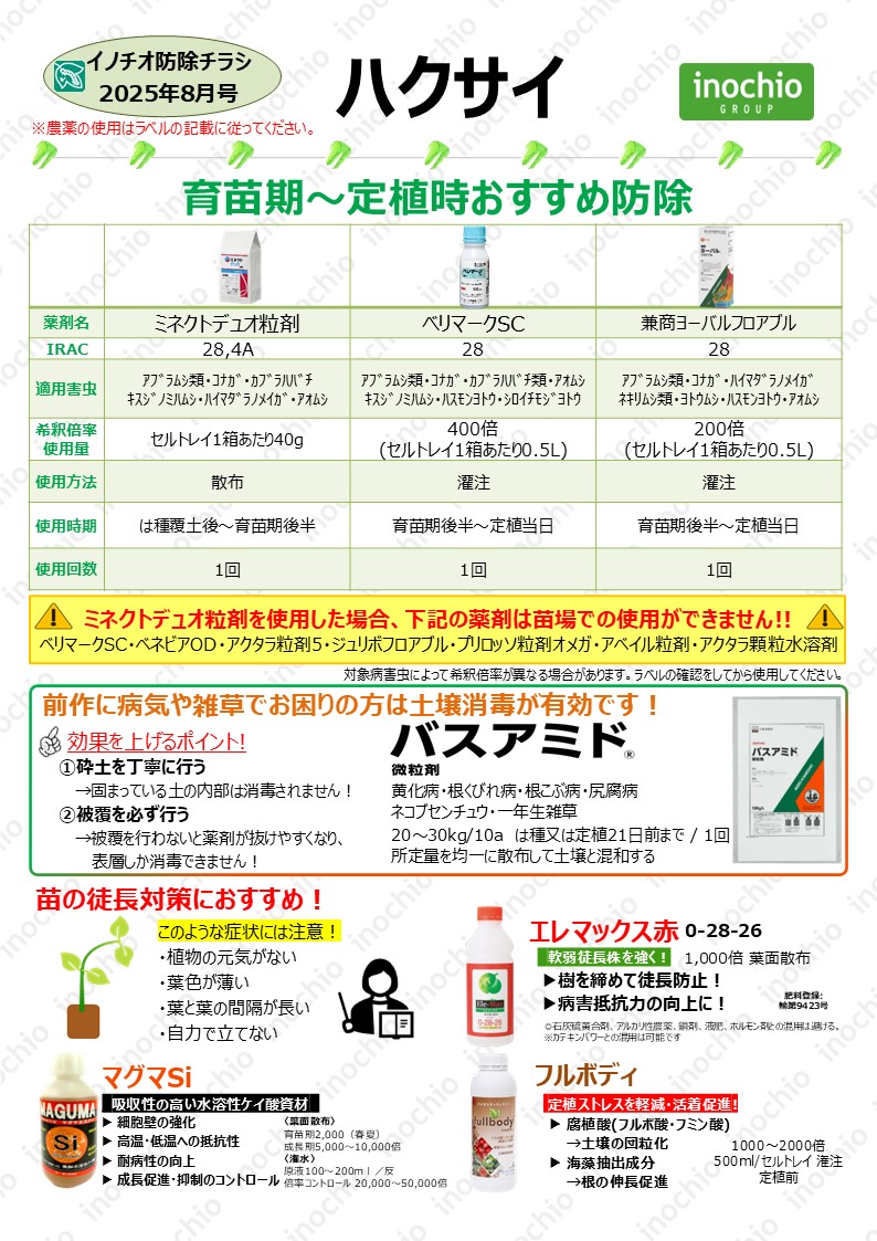 【2025年8月】ハクサイ編「育苗期~定植時おすすえ防除」