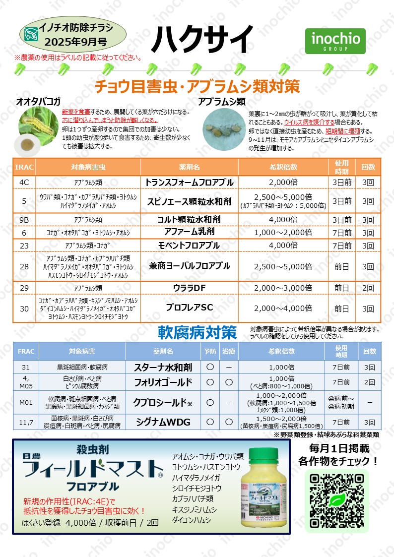 【2025年9月】ハクサイ編「チョウ目害虫・アブラムシ類対策」