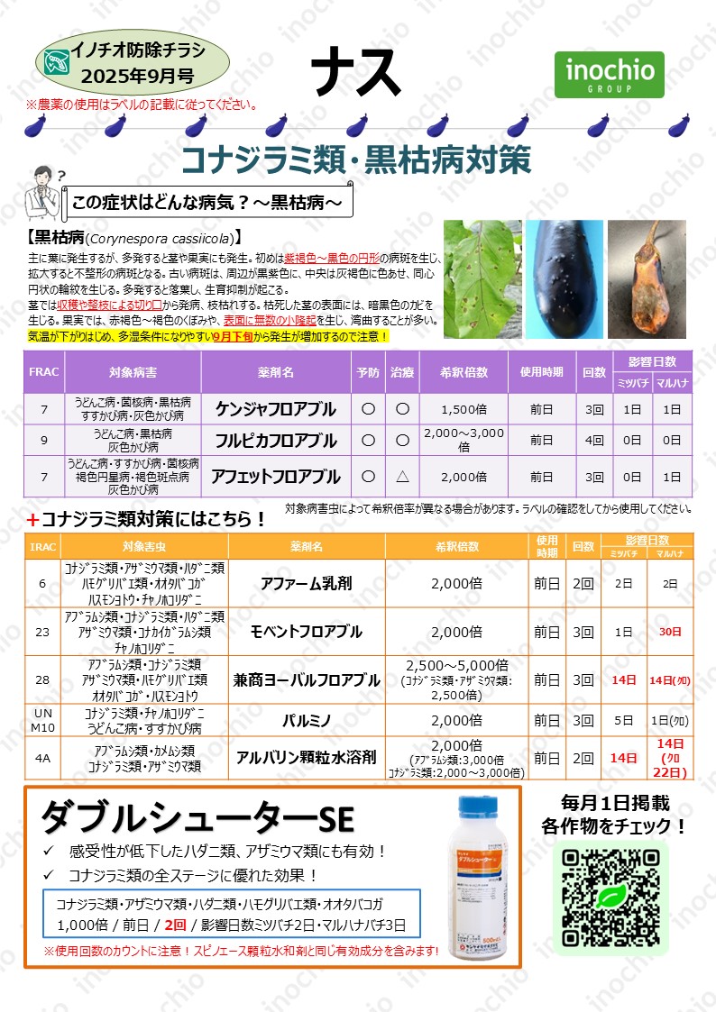 【2025年9月】ナス編「コナジラミ類・黒枯病対策」
