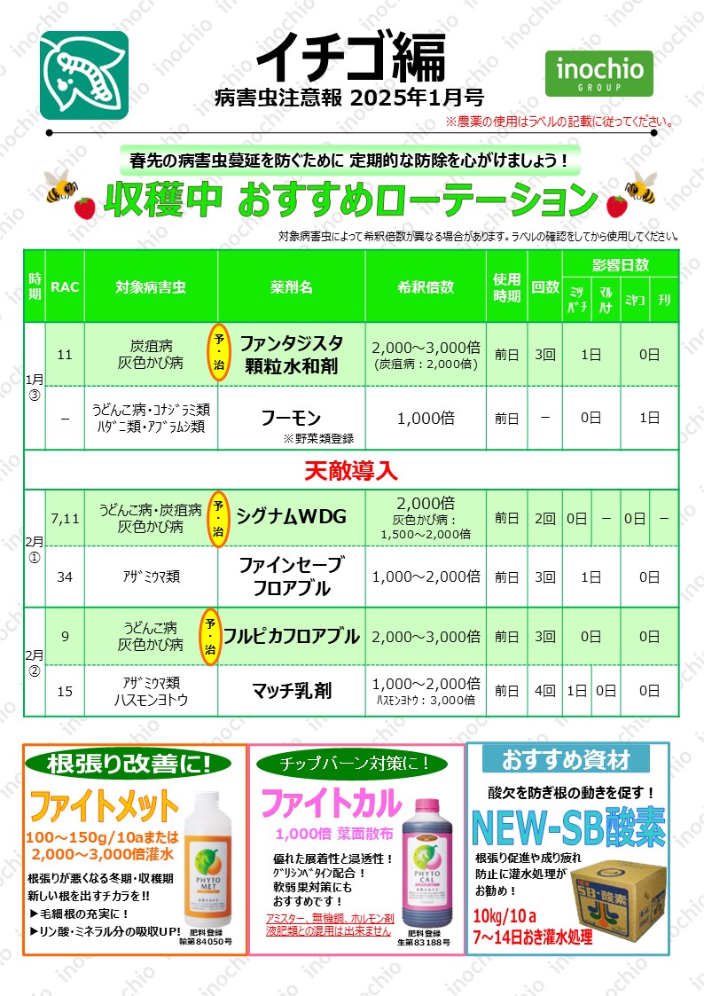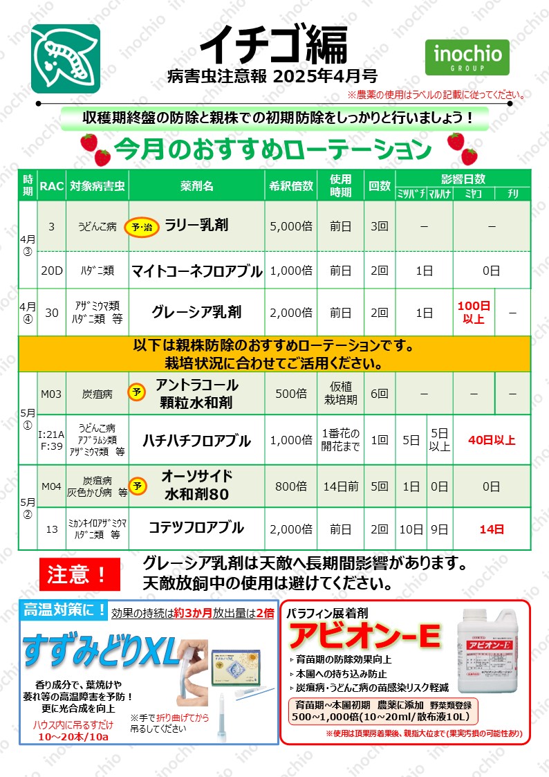 【2025年4月】イチゴ編「収穫期終盤の防除と親株での初期防除を!」