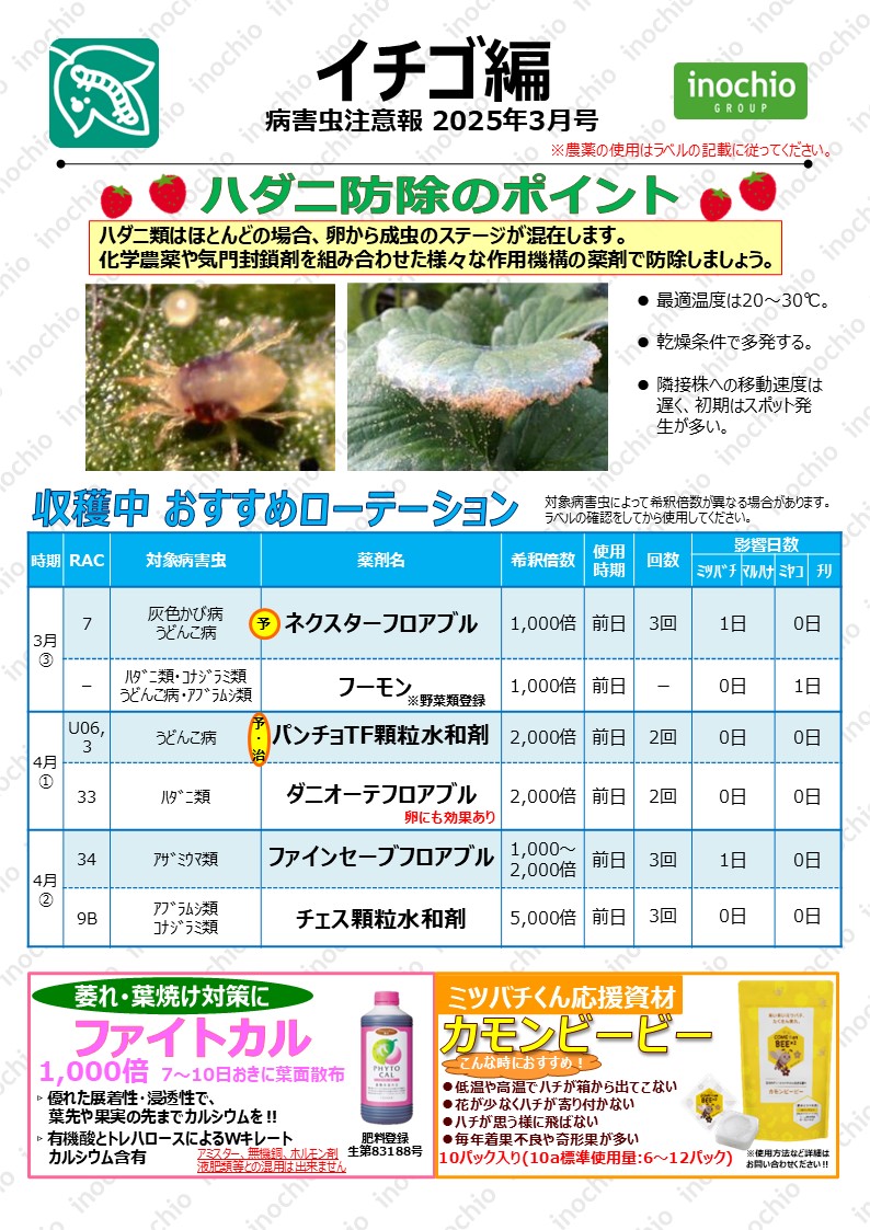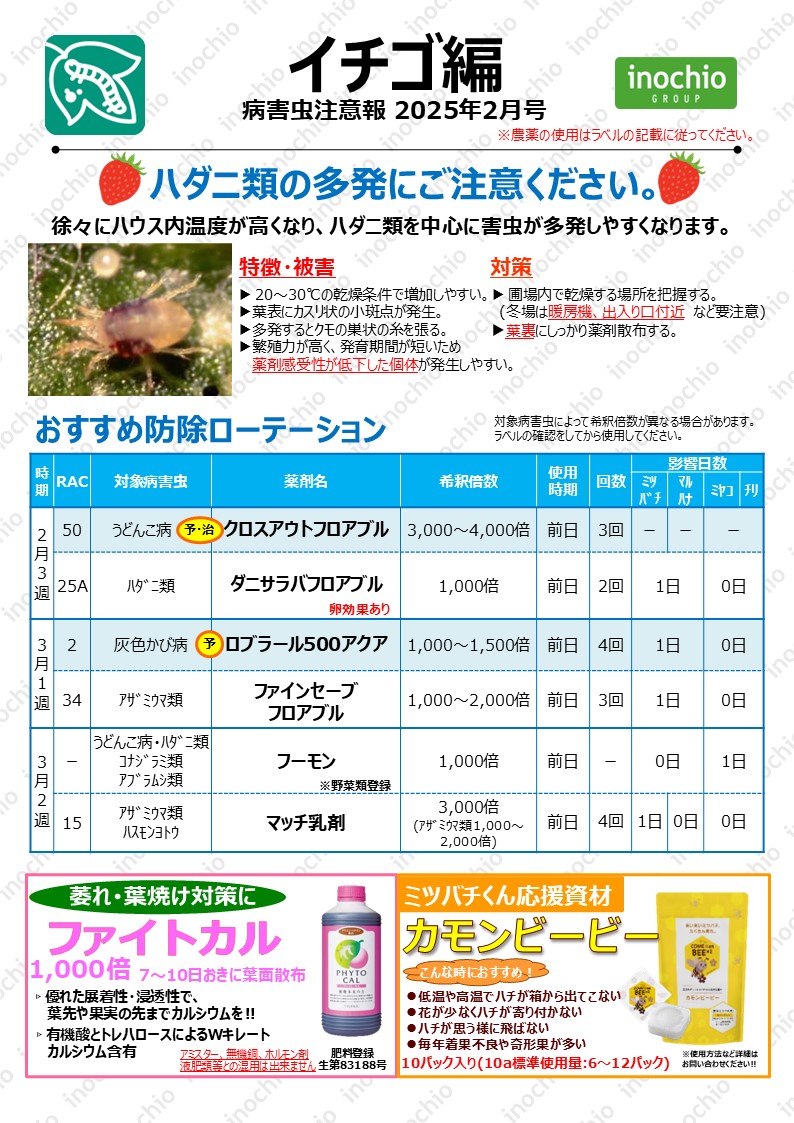 【2025年2月】イチゴ編「ハダニ類の多発にご注意ください」