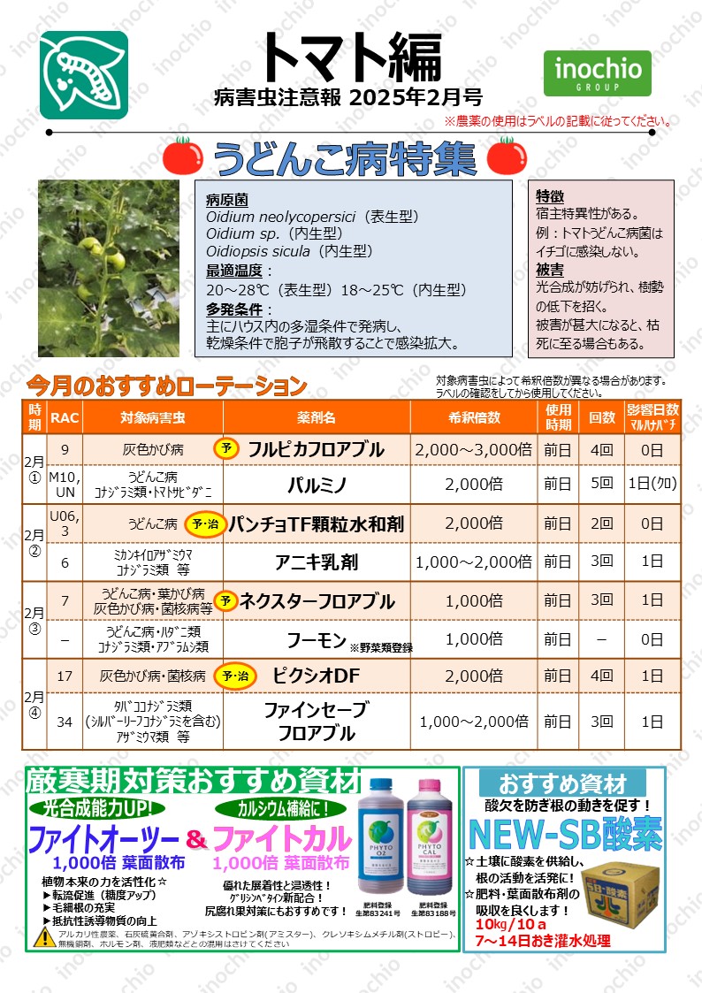 【2025年2月】ミニトマト編「うどんこ病特集」