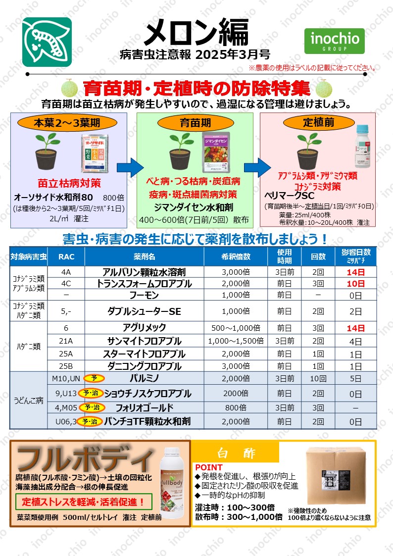 【2025年3月】メロン編「育苗期・定植時の防除特集」